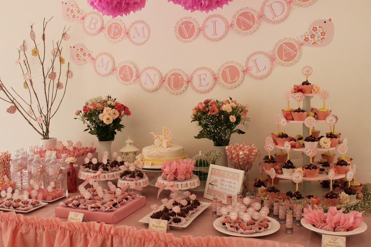 Neste final de semana, tivemos o Chá de Bebê da Manuella, da mamãe Ilda que está de 8 meses! Como a mamãe me disse que estava decorando o quarto da Manuella com flores e passarinhos, sugeri o mesmo tema para o chá. A cor rosa salmão foi a pedida pela mamãe. Tudo ficou muito delicado e charmoso!